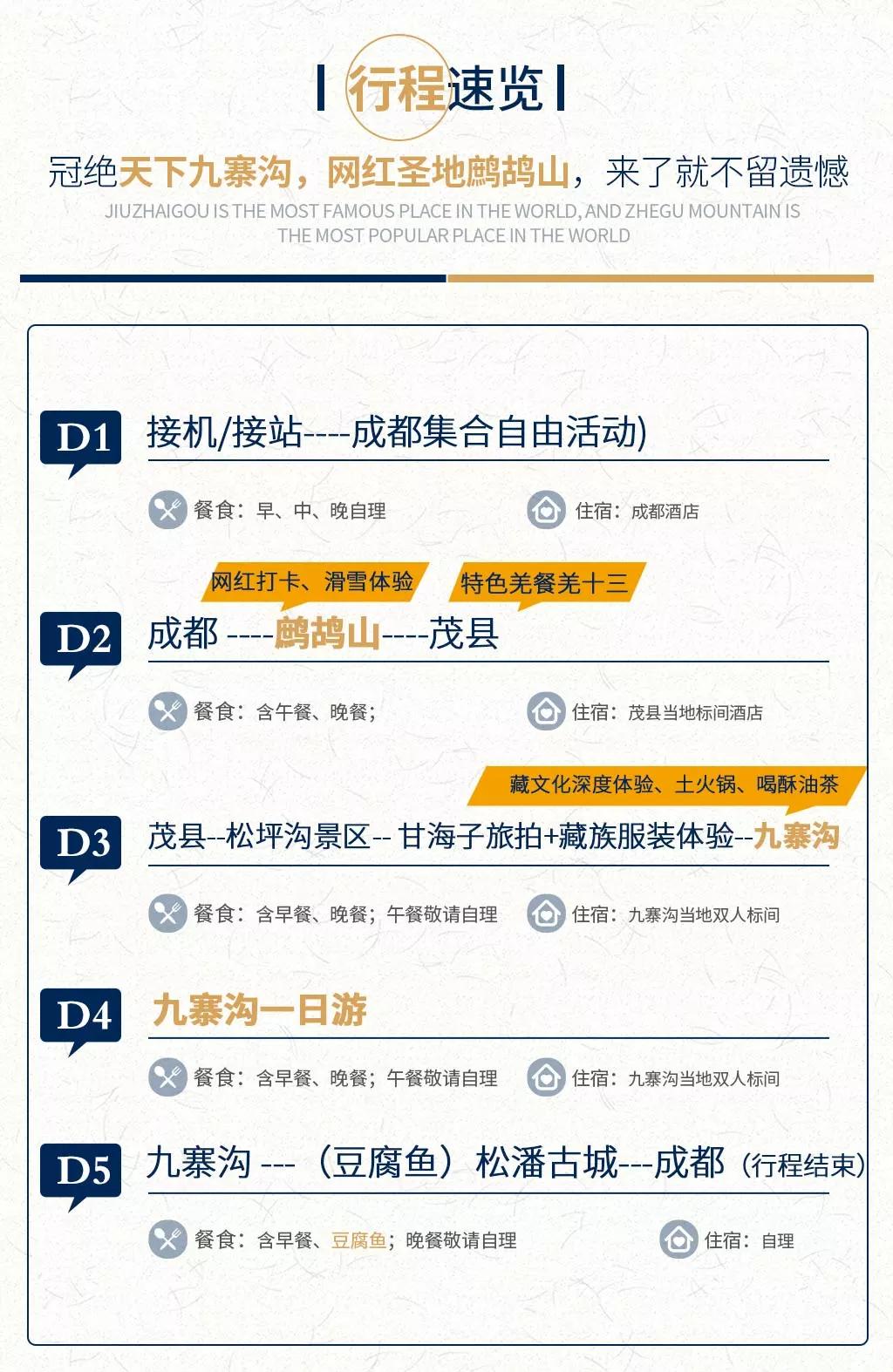 3、九寨溝面積較大游客需求不一,因此主要以游客自助游形式游覽,如無導游陪同望您諒解。游覽開始前導游會與您約定好集合時間,請務必按時到達指定地點,避免耽誤大家接下來的行程;