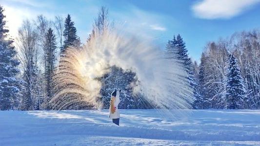 冬季禾木村的積雪很厚,在透白而松軟的雪毯上徒步行走,瞬間感覺自己像一位步履蹣跚的老人,左右搖晃,腳底生花,唯有這樣腳步慢下來,心才會生根發芽,漫步在禾木,隨處可見一朵一朵大小不一的雪蘑菇,像是給木屋帶上了厚厚的雪帽子,眼前宛若一個童話世界,我們在這個潔白世界里堆雪人、打雪仗、拍美照,在雪地里打滾撒潑嬉笑玩鬧;