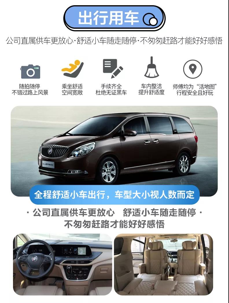 2.交通:全程2-6人舒適商務小車出行,車型大小根據人數安排,保證一人一正座位。