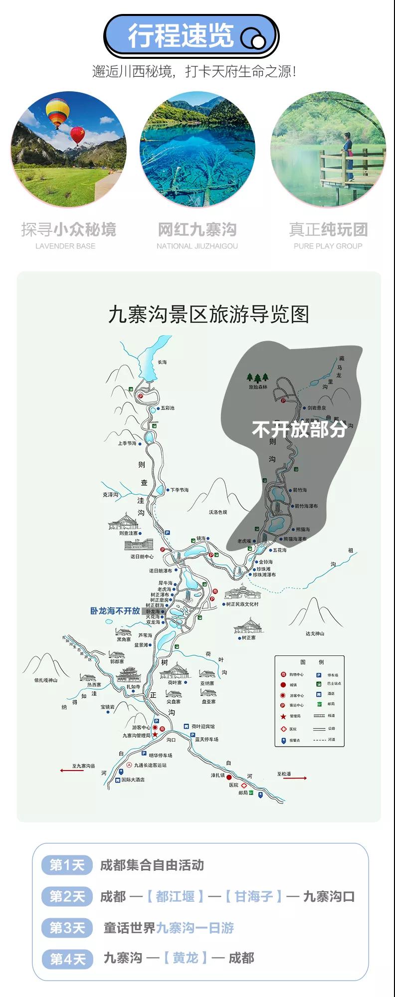 4、九寨溝景區實行分區域開放,開放區域為溝口經諾日朗瀑布至長海,扎如溝的扎如寺及日則溝的鏡海;其中,長海、五彩池、鏡海、諾日朗瀑布、樹正群海、雙龍海瀑布、扎如寺等景觀原則上為步行游覽區,具體游覽方式請聽從隨車講解員安排。
