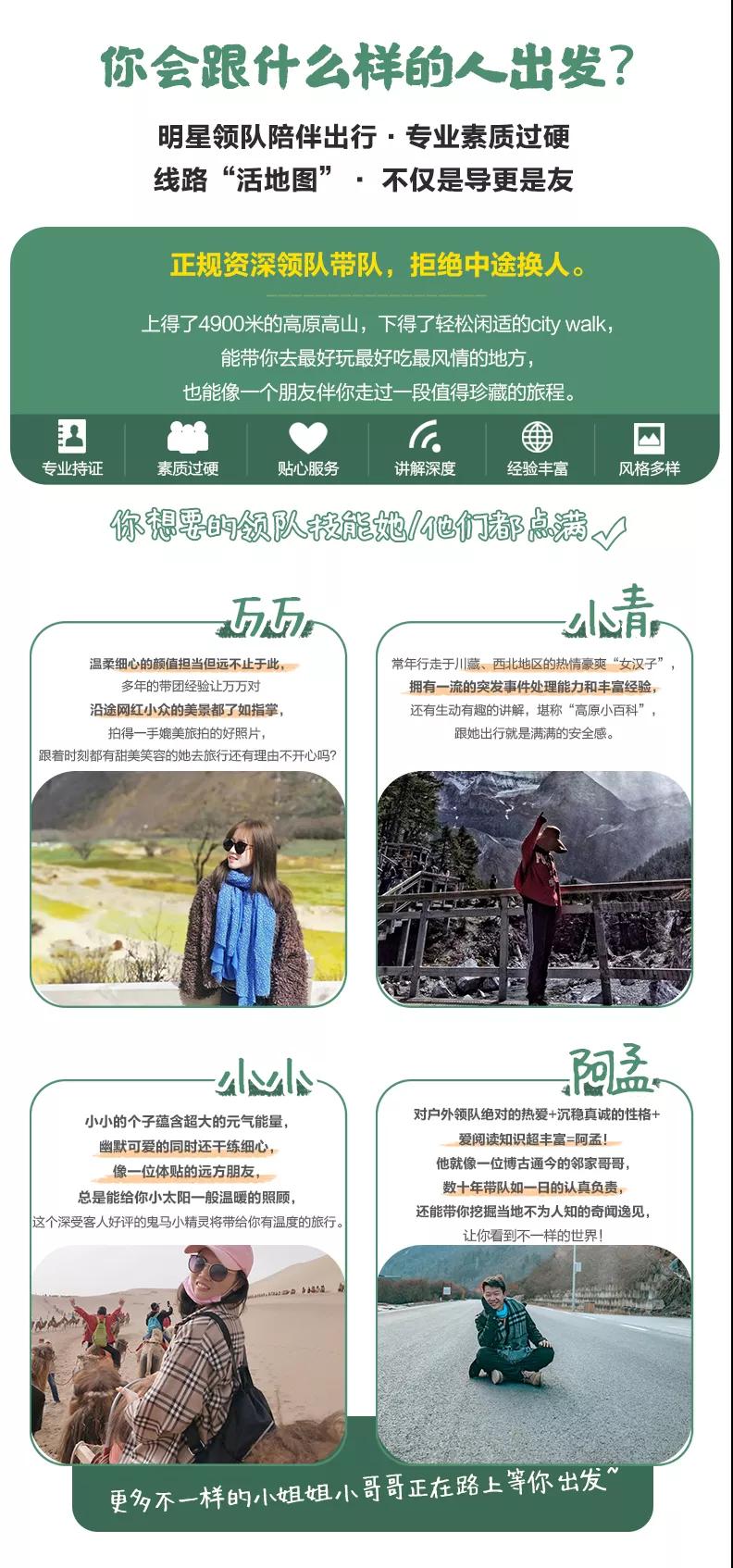 接站服務:本次活動提供成都市三環內24小時拼車接機/接火車服務,接機/接火車的工作人員會在您出發日期前一天21:30之前向您推送消息并與您聯系,如果超過時間沒有接到任何通知,請及時與旅行管家或報名處聯系。(拼車服務:機場或火車站等待時間一般為15-20分鐘,最長不超30分鐘(節假日拼單人數較多情況下客人等待時間可能會延長)。