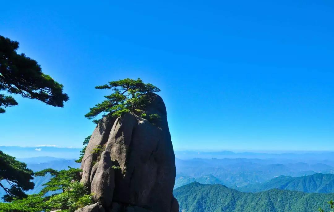 仰望天空,黃山的天湛藍(lán)如洗,入了秋更顯得高遠(yuǎn),空曠無邊、萬里無云,更無一絲雜質(zhì),像一塊覆蓋大地的藍(lán)寶石。