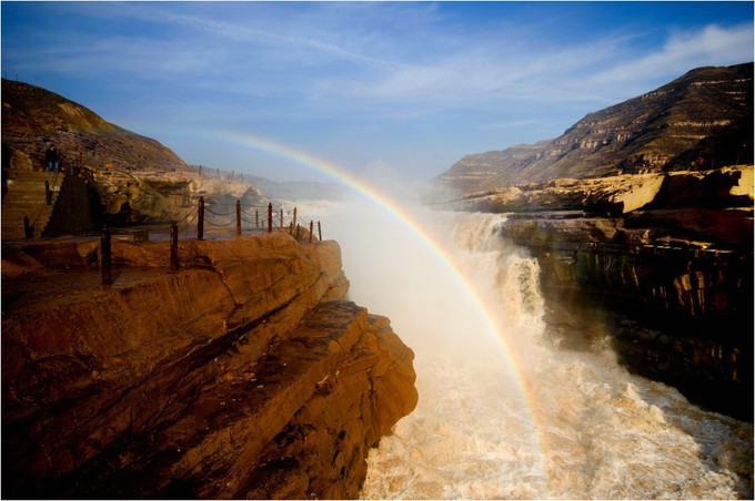 十里龍槽,作為壺口瀑布的另外一個奇觀,它是由瀑布巨大的水量和爆發沖擊而成的深陷數十米的深淵。在壺口水量較小時,十里龍槽水位降低,這時我們便可以一覽它的全貌??吹竭@里,各位小伙伴可以想象大自然的力量是有么強大了吧,最主要的是,你們知道壺口瀑布沖擊力有多強了吧,去觀看的時候一定要注意安全哦!