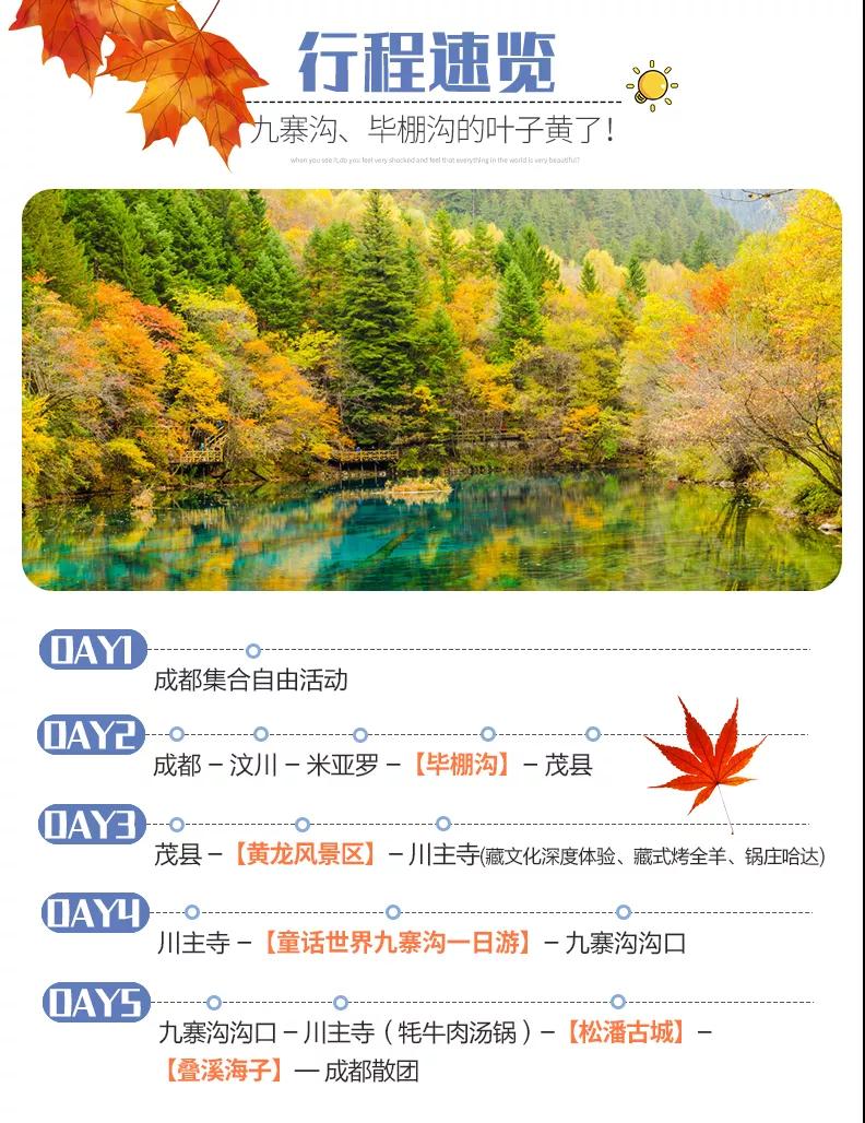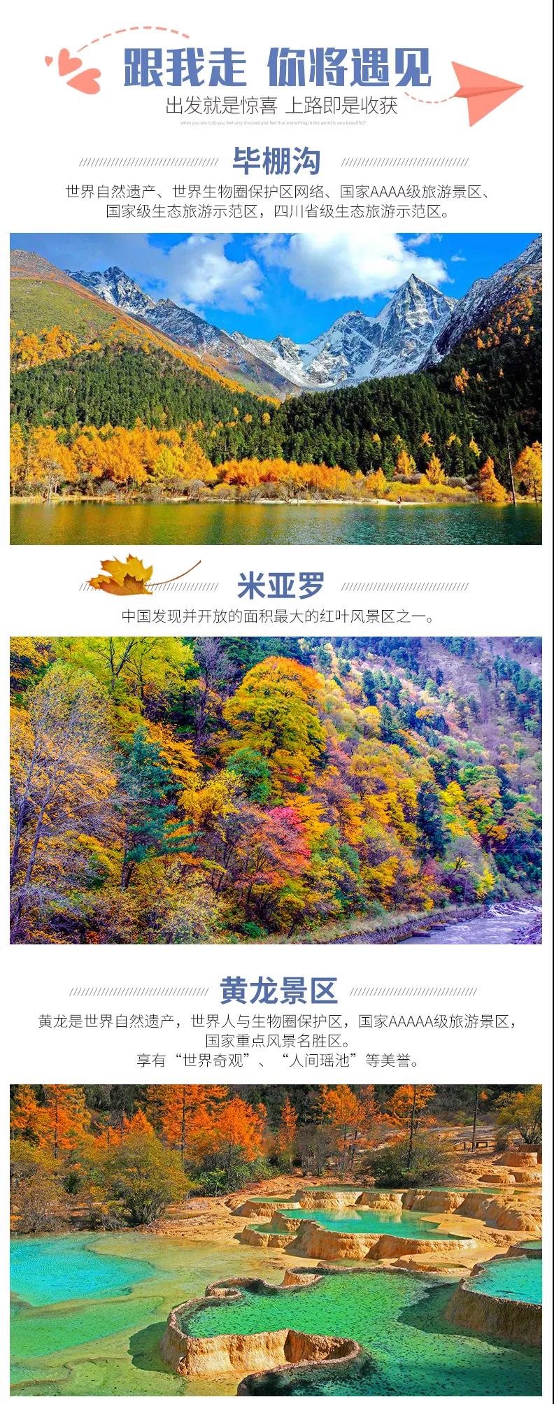 含全程九寨溝門票、黃龍風景區門票、畢棚溝門票。