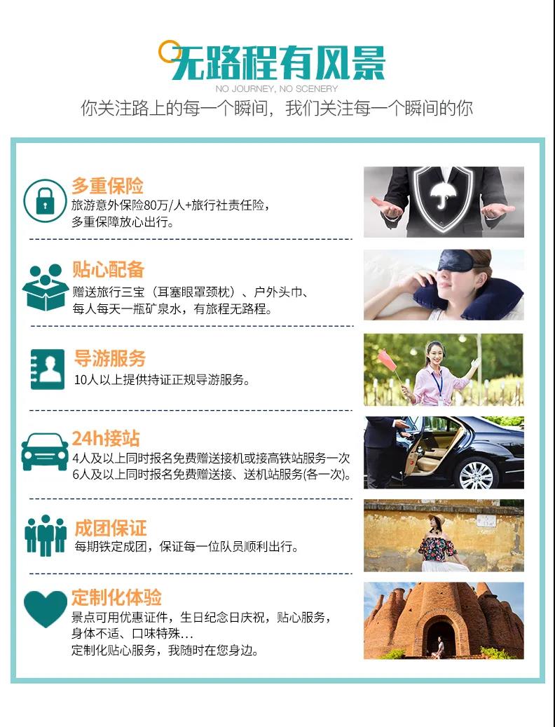 (6)4人及以上免費贈送接機或接高鐵站服務(單程一趟);6人及以上同時報名該線路,免費贈送接、送機站服務(各一趟)。