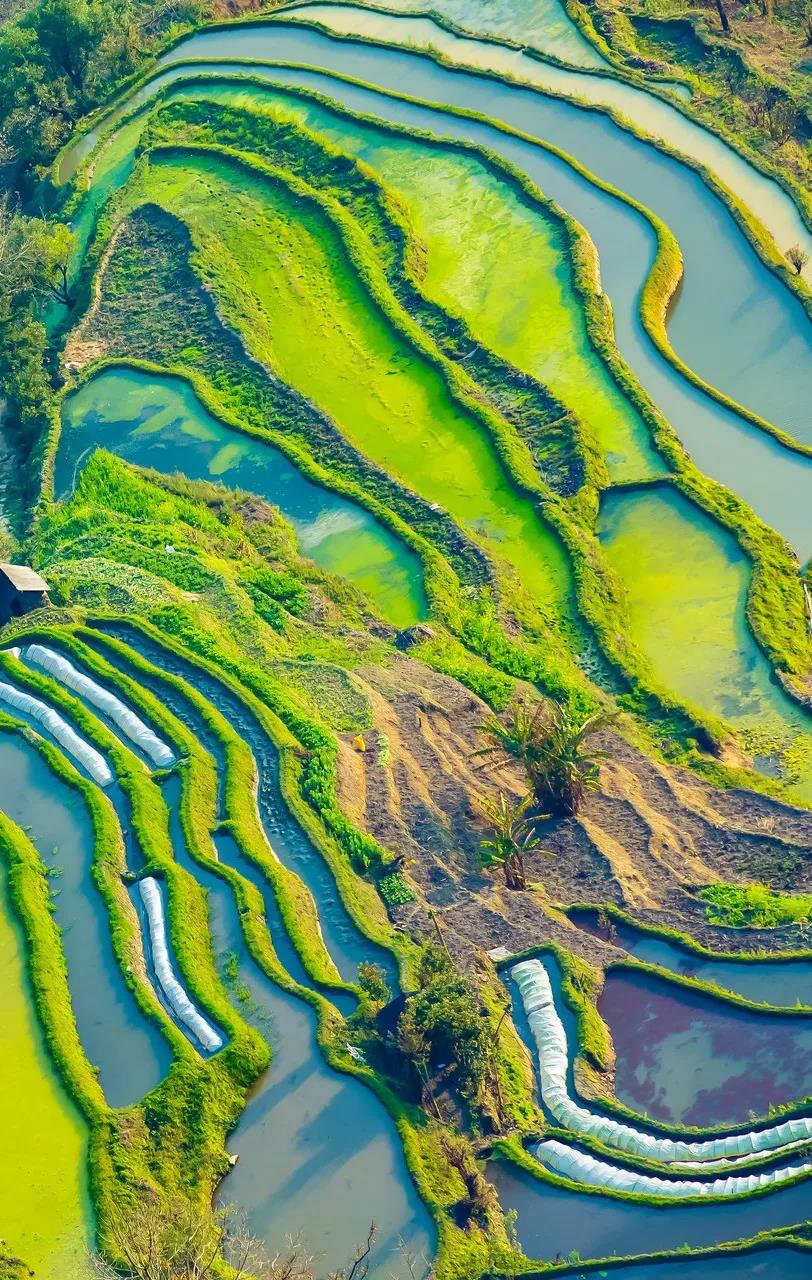 早上好!昨天看了壩達梯田的夕陽晚照,今天我們就去日出最佳拍攝地——【多依樹梯田】,當朝陽透過云層射出光芒,縷縷陽光會穿過薄薄晨霧架起彩色的橋梁,晨霧夾雜著繽紛的光,一切美的如夢似幻;隨后去往【愛春】拍攝藍色梯田,這個村莊的梯田在灌水后就會呈現一片如天空一般蔚藍的藍色,也因此得名藍色梯田。