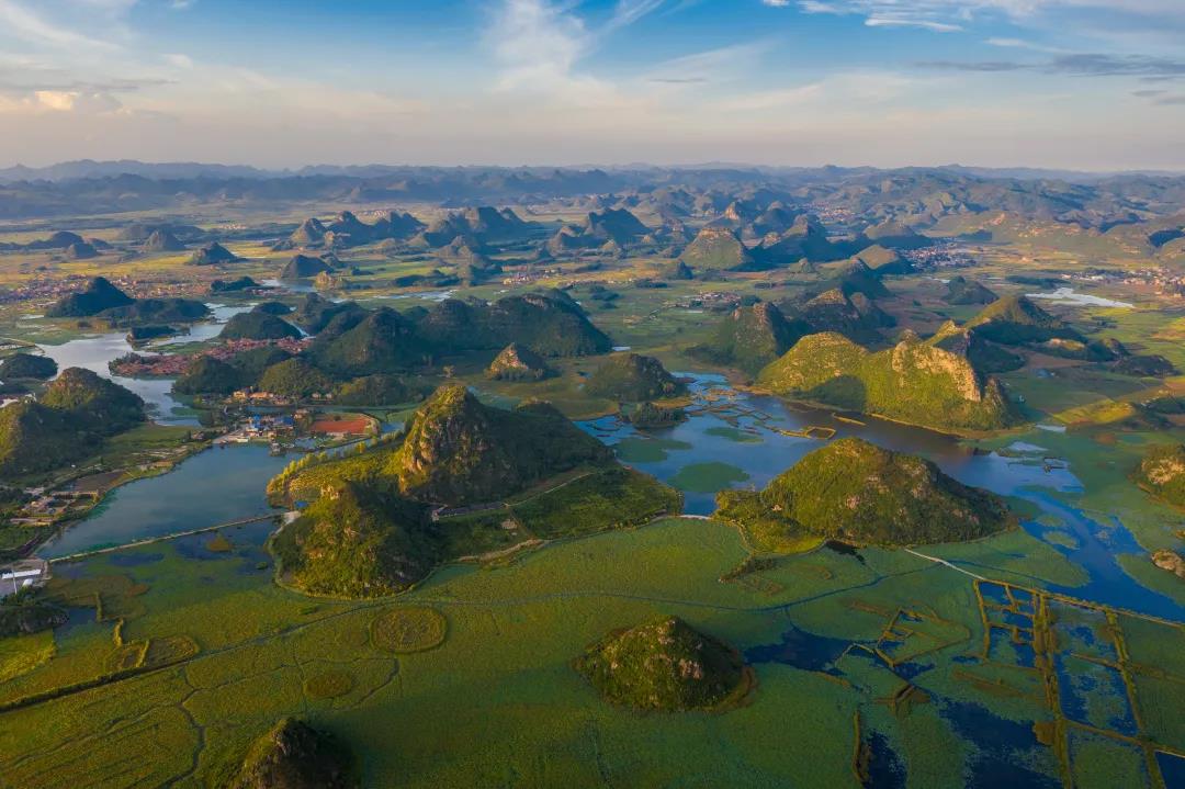 下午16:30左右到達普者黑村,入住景區酒店或客棧標間,放好行李稍作休整后,我們一同前往青龍山,登青龍山觀日落和普者黑全景。沿彎彎曲曲的石梯拾級而上,登上山頂,觀金烏光芒漸暗,落霞染紅云層,映在普者黑整片喀斯特峰林之上,孤峰、湖泊、溶洞,光影交錯猶如梵高筆下的油彩,蔚為壯觀。