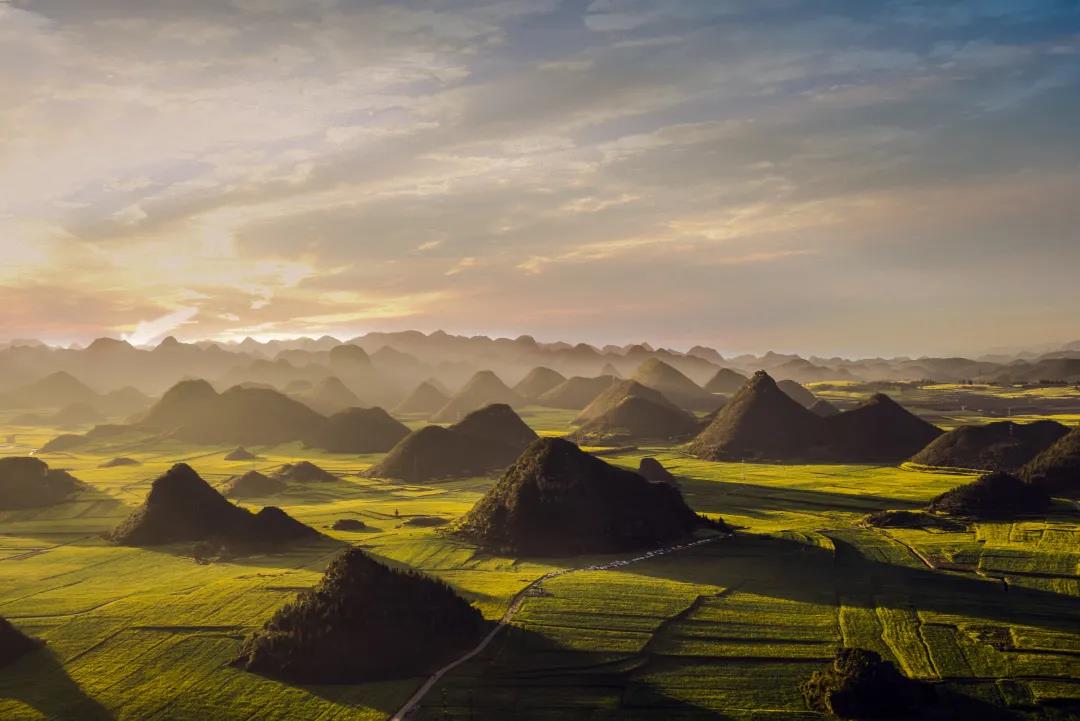 下午晚點我們前往羅平【金雞峰】,這里的時間都是給你的,你可以去金雞峰山頭上拍攝,天氣好可以拍攝到耶穌光射到云霧中若隱若現的油菜花以及金雞峰群;或者是選擇在不高的山峰間游走,看初春抽新嫩;還可以穿上我們特地為您準備的特色民族服裝,在漫山遍野的油菜花中放飛自我,凹好造型盡情拍照!