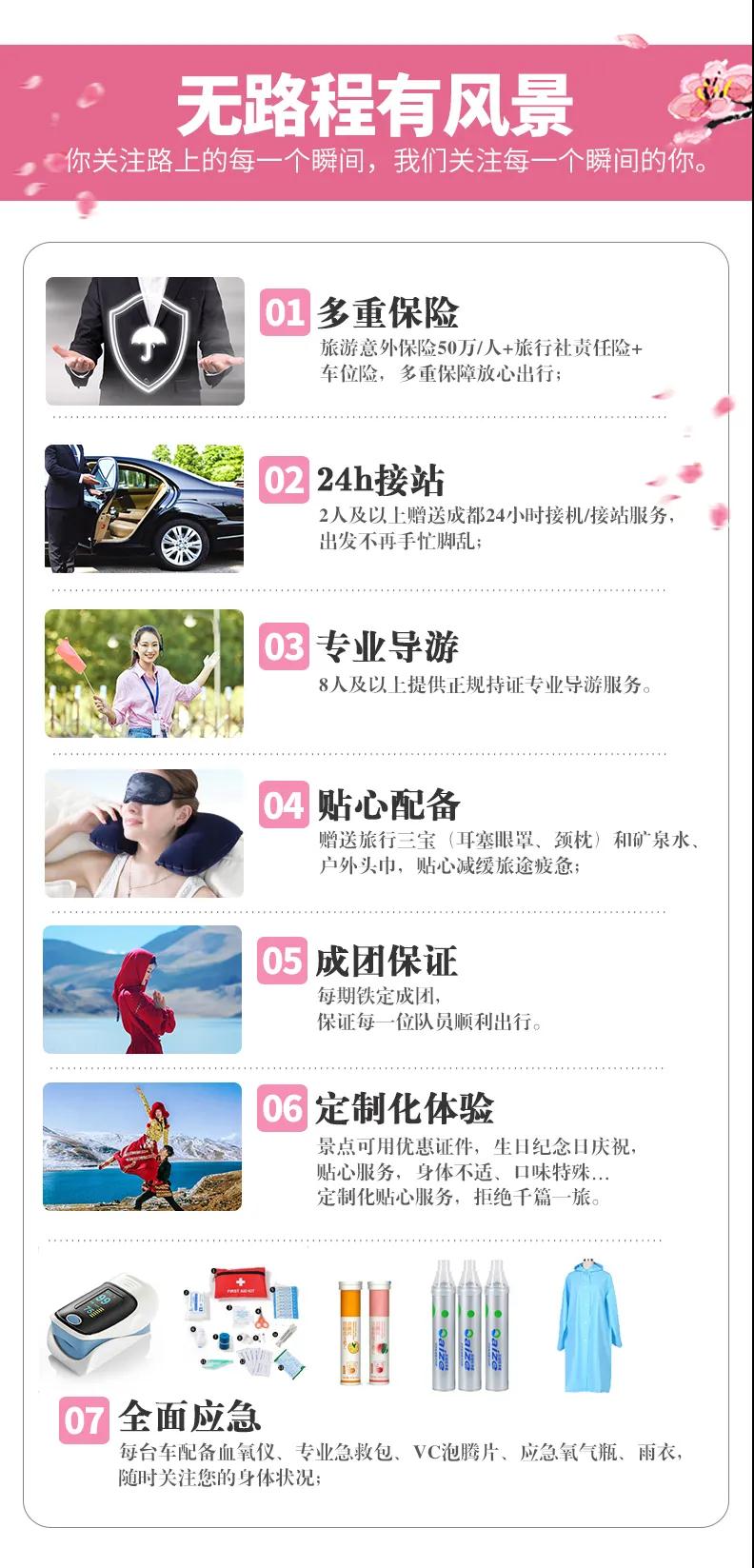 3、沿途景區景點、餐廳、廁所、加水點、高原緩沖區內設有小賣部、超市、旅游紀念品、手工藝土特產等販賣攤點,非我方安排,請游客根據自身需求及興趣選擇消費,并保留好購物小票以便后續維權;購物時請保管好隨身攜帶的物品,不到人多、擁擠的地方購物,不當眾清點錢包里的鈔票,也不隨商品推銷人員到偏僻地方購物或取物。
