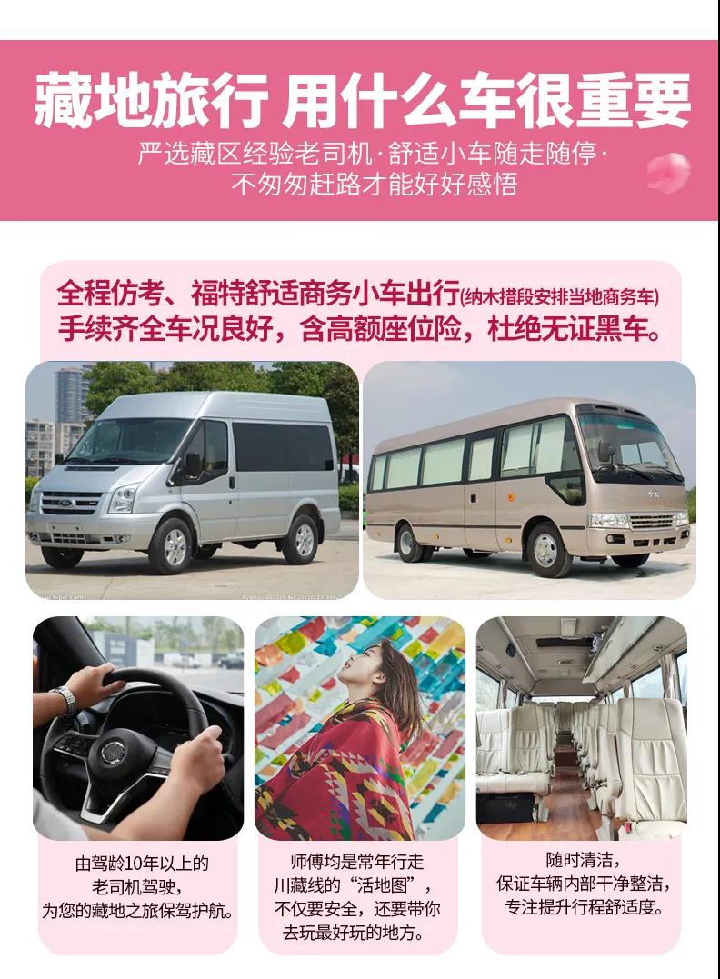 1. 納木措段需換乘當地商務車,由司機提供向導服務。