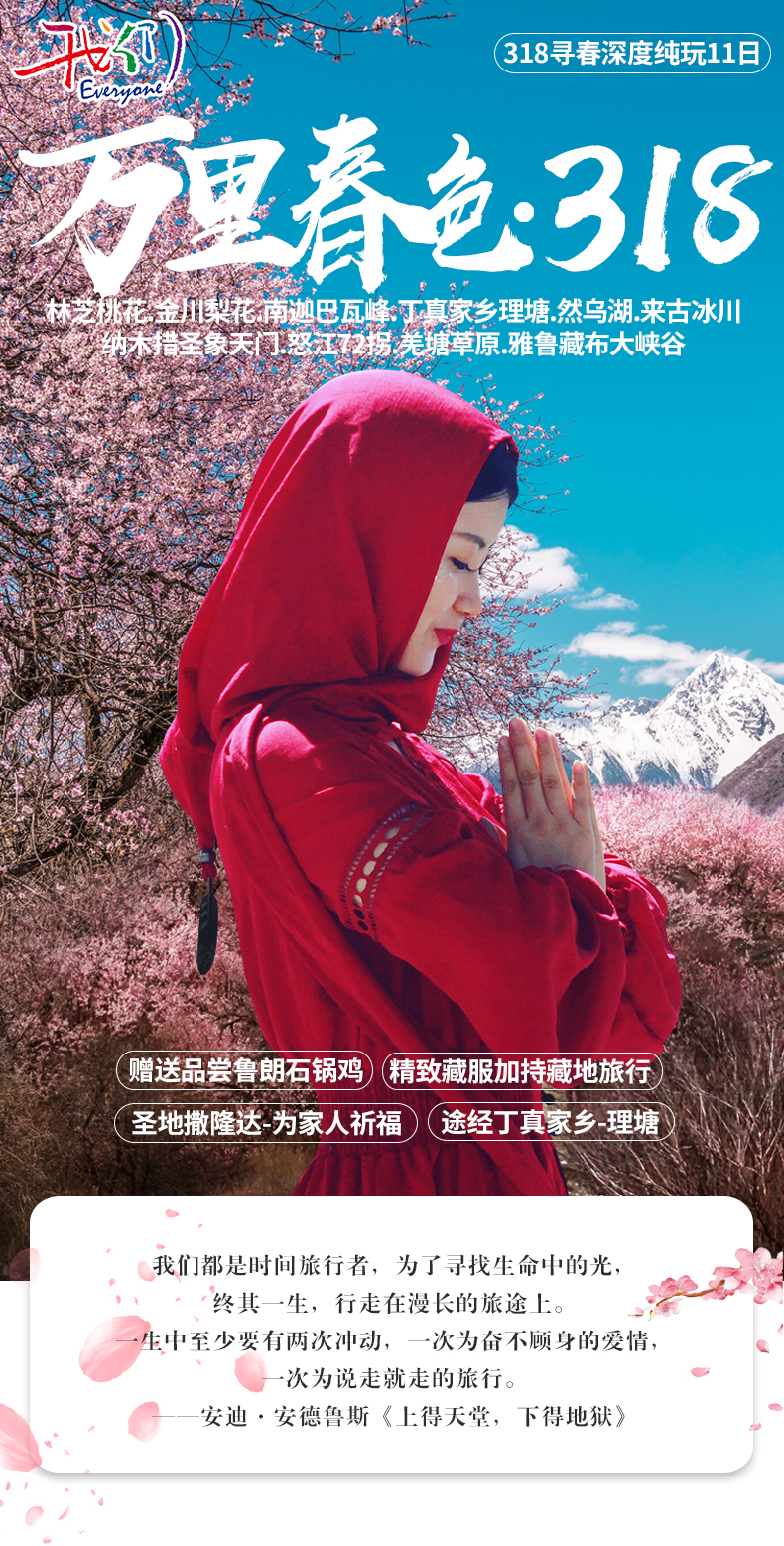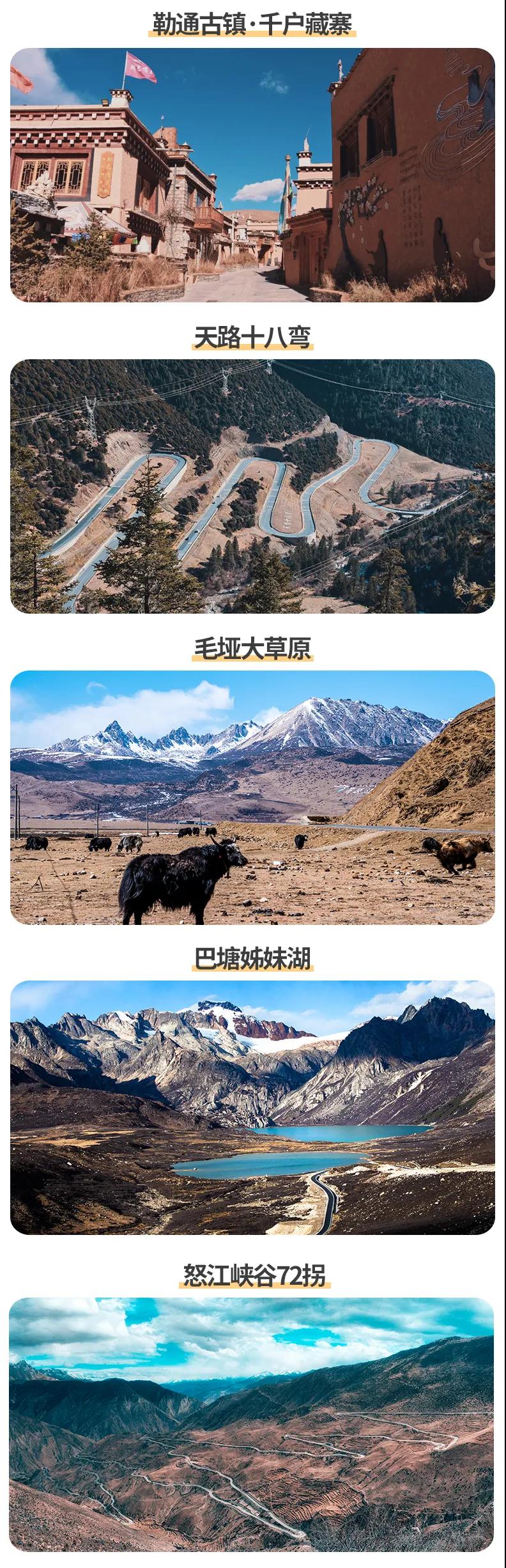 林芝桃花+金川梨花+南迦巴瓦峰+理塘+然烏湖+來古冰川+納木錯圣象天門+怒江72拐+羌塘草原+雅魯藏布大峽谷