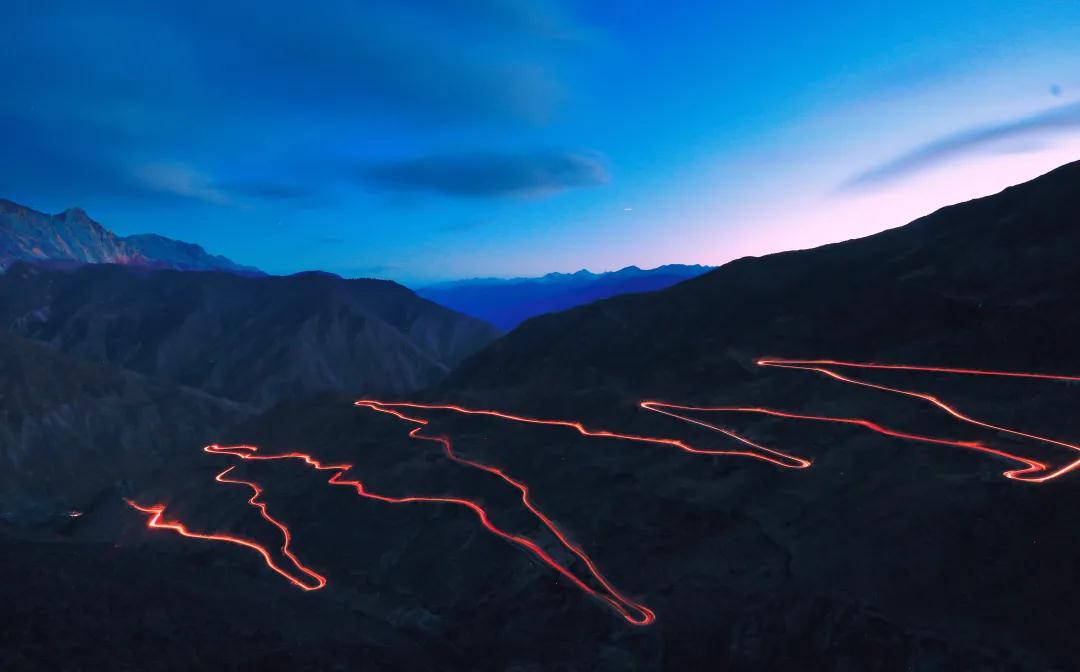 由于地勢的原因,在邦達的業拉山(埡口海拔4658米),形成了著名的【怒江72道拐】,也稱“九十九道回頭彎”、業拉山“108拐”。從業拉山口,一直下到海拔不到3000米的怒江邊,高度直降近2000米。山路曲折盤旋,一彎又一彎,一圈又一圈,無限循環,轉到后來你根本不可能記得它轉了多少圈。如此密集的回頭彎,被稱為川藏線上拐彎最多的路段,也是“中國十大險峻山路”之一。