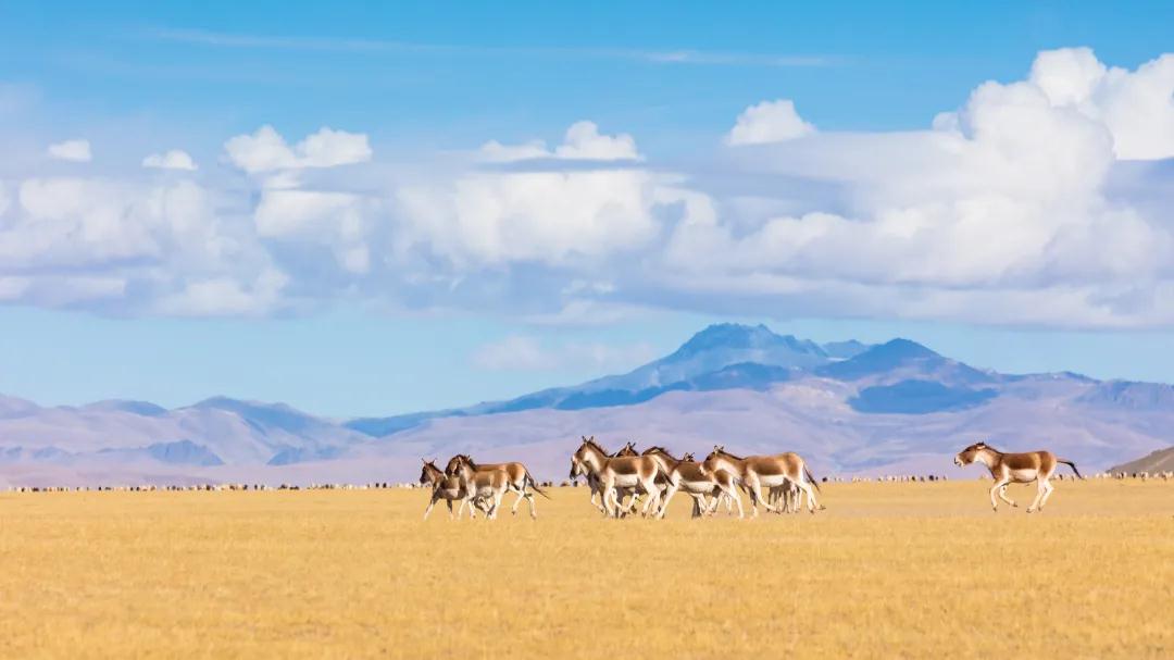 賞完日出,我們翻越那根拉山口,穿越【羌塘草原】,這是一片無人的荒原,卻也是野生動物的天堂。一路上能見到藏羚羊藏野驢,在廣袤無垠的高原草甸上,成群結隊,自在奔跑,奔跑時帶起灰塵,很快消失在眼前。一路顛簸一路狂奔在這方神秘的高天厚土之上,離塵世越來越遠,離自然越來越近。這里跟我們工作生活的都市仿佛兩個世界,“無人區”里荒草遍地渺無人跡,億萬年的寂靜很難被打破,站在高原的遼闊天空下,頓覺自己渺小,而有時候,人是要品嘗一下自己的渺小的,才能從浩大之中知道昨日之事今日之愁的微小,才知道皆可拋;走進它,沒有人打擾你,好好享受一番它的莊嚴、靜穆和深邃。