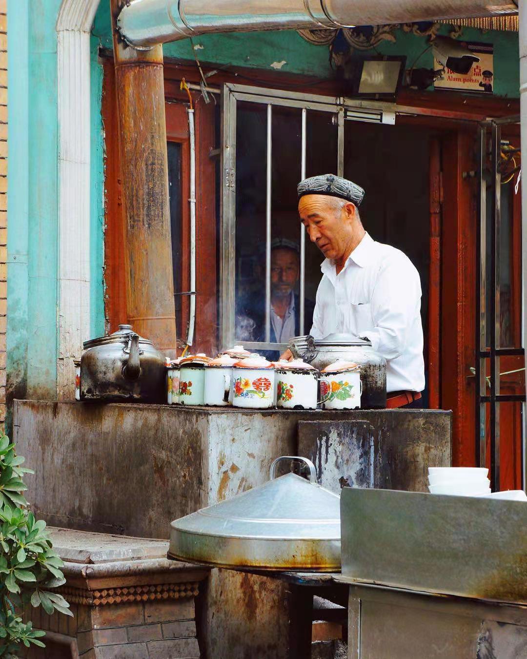 下午去看看【高臺(tái)民居】隨后可以繼續(xù)前往【喀什百年老茶館】靜靜感受下喀什老城的慢生活。這里記錄著喀什百年的歷史,也是《追風(fēng)箏的人》的取景地之一。茶館和樂(lè)器表演在二樓,踩著木地板走到樓上你會(huì)發(fā)現(xiàn),這里和其他茶館不同,維吾爾族傳統(tǒng)的大炕,鋪上顏色絢麗質(zhì)感非常好的毯子。屋內(nèi)沒(méi)有桌椅,所有人拖鞋坐在炕上,圍成一圈,喝茶,吃馕,聊天。