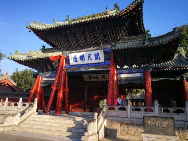 中國西北地區著名古建筑群之一,原名太昊宮,俗稱人宗廟,地址位于甘肅省天水市秦州區西關伏羲路。一九六三年被甘肅省人民政府公布為甘肅省重點文物保護單位,現為全國重點文物保護單位。伏羲廟坐北朝南,臨街而建,院落重重相套,四進四院,宏闊幽深。廟內古建筑包括戲樓、牌坊、大門、儀門、先天殿、太極殿、鐘樓、鼓樓、來鶴廳共10座;新建筑有朝房、碑廊、展覽廳等6座。新舊建筑共計76間。整個建筑群包括牌坊、大門、儀門、先天殿、太極殿沿縱軸線依次排列,層層推進,莊嚴雄偉。