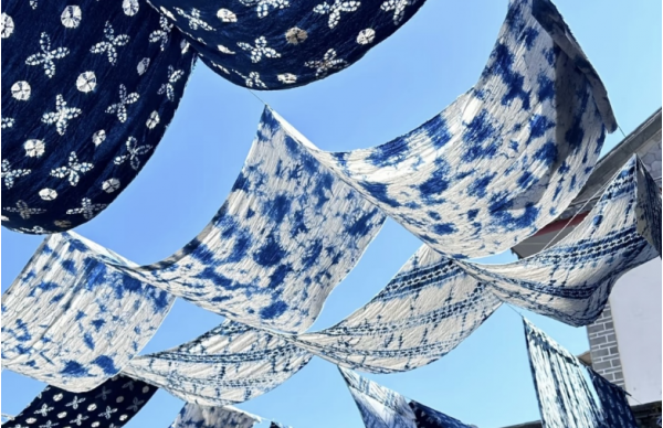 制作時,以棉白布為載體,用天然藍(lán)靛作染料,經(jīng)手工繪圖、扎縫、浸染、漂洗等工序完成。通過獨特的扎結(jié)技法,布料浸染后形成藍(lán)白相間的精美圖案,常見的有蝴蝶、花草、幾何紋樣等,每一種都寄托著白族對美好生活的向往。