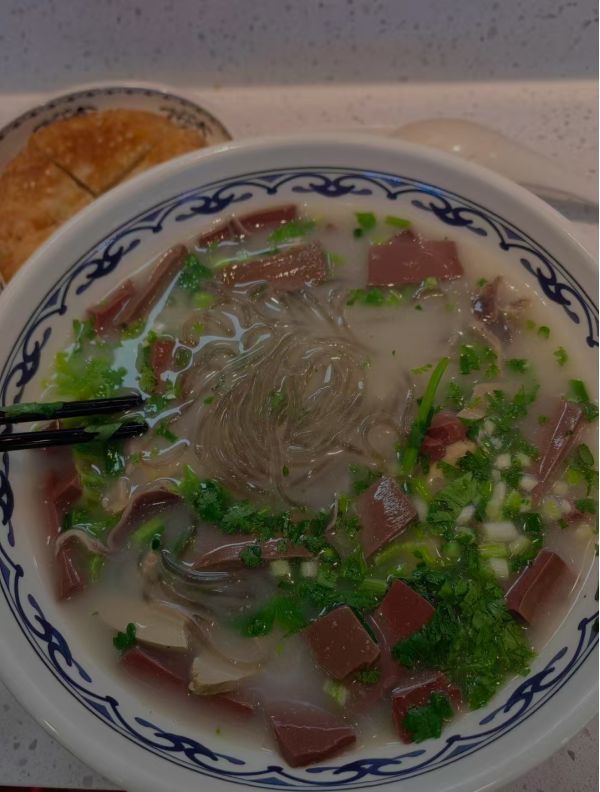 鴨血粉絲湯是南京、鎮(zhèn)江的傳統(tǒng)名菜,屬金陵菜,是金陵菜和金陵小吃中重要的代表,也是久負(fù)盛名以鴨為特色的美食之一。鴨血粉絲湯由鴨血、鴨腸、鴨肝等加入鴨湯和粉絲制成,以其口味平和,鮮香爽滑的特點(diǎn)與南北皆宜的口味特色,風(fēng)靡于全國(guó)各地。