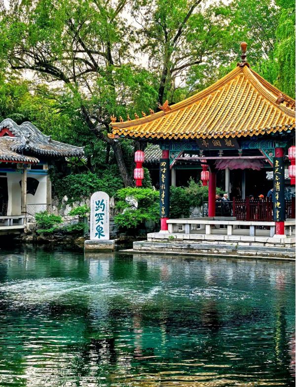 趵突泉位于山東省濟南市歷下區(qū),東臨泉城廣場,北望五龍?zhí)叮娣e達158畝,是濟南三大名勝之一,位居濟南七十二名泉之冠,也是最早見于古代文獻的濟南名泉。泉眼位于趵突泉公園內(nèi)的濼源堂前,泉水分三股涌出平地,每天涌出7萬立方米泉水,最大涌水量為16.2萬立方米/天,泉水從地下石灰?guī)r溶洞中涌出,一年四季恒定在18℃左右。