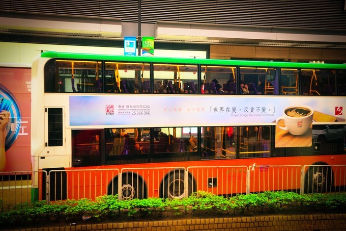 等了30分鐘的代價(jià)是,可以坐在big bus樓上第一排,遮風(fēng)擋雨還能偷拍。香港,隨處可見的異域風(fēng)情。