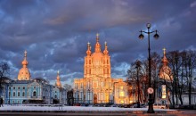 斯莫爾尼宮:它位于圣彼得堡市中心整體色彩和皇村的葉卡捷琳娜宮的色彩一樣,也是清爽干凈的藍(lán)白相間,是巴洛克風(fēng)格和俄羅斯風(fēng)格的融合,在圣彼得堡的教堂里,相當(dāng)具有代表性;