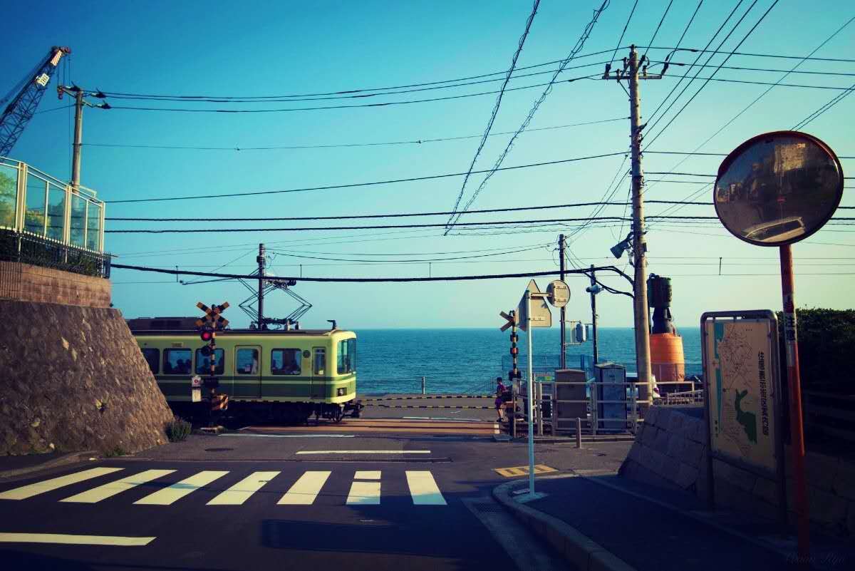 【車觀江之島電車-鐮倉高校前站】鐮倉高校前站是一由江之島電鐵所經營的鐵路車站,位于日本神奈川縣鐮倉市境內,是江之島電鐵線沿線的一個無人車站,由于車站僅與七里濱的海岸線隔著國道134號相望,因此站在月臺上即能眺望海邊的風光;