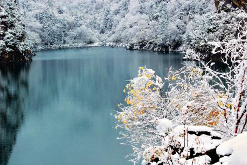 九寨溝得名于溝內有九個藏族村寨,以“九寨六絕”——翠湖、疊瀑、彩林、雪峰、藏情、藍冰而聞名天下。遠望雪峰林立,白雪皚皚;近看碧水澄澈,清可見底;除卻如夢似幻的自然景觀,還有藏家木樓、晾架經幡、棧橋、磨房、藏族習俗及神話傳說構成的人文景觀,也因這不二的美,你能在這里見到許多熱門影視劇里的取景場地。冬季的九寨溝變得尤為寧靜,也更具詩情畫意,山巒與樹林銀裝素裹,瀑布變成了一幅幅巨大的天然藝術冰雕如此潔白而高雅的世界,錯開擁擠的游人,卻能收獲一個觀賞九寨六絕之“藍冰”和“雪峰”的最好時機。