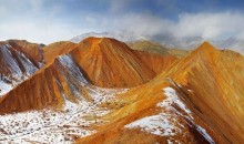 車子行進在海拔三千多米的【蓋孜峽谷】中。喀喇昆侖公路像一條玉帶,沿著蓋孜河在蓋孜峽谷中穿梭著,眼前的景色又變成了綿延不絕的荒山雪嶺。此時突然出現的美麗湖泊便是【布倫口白沙湖】湖水在帕米爾高原潔靜的陽光下,閃耀著金屬般的光澤。湖水在天空、白沙和雪山的綜合作用下呈現出一種別樣的藍。