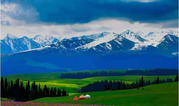 4、【唐布拉百里畫廊】:唐布拉百里畫廊的起點(diǎn)和終點(diǎn),是從唐布拉避暑山莊到喬爾瑪這段路,喀什河兩岸豐茂的山地草原和河谷草原,都屬于唐布拉風(fēng)景區(qū),這里藍(lán)天、白云、綠草茵茵、流泉滾滾、溪水淙淙,云衫密林、蒼翠挺拔,冰峰雪嶺倒影水中,喀什河流橫貫全境,一步一景,如詩如畫,美不勝收。