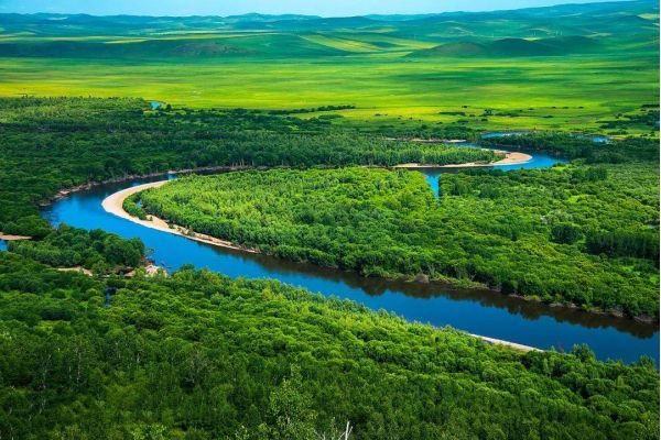 【天下第一曲水】——一路向東北出發(fā),我們到達(dá)“父親的草原 母親的河”之地—莫日格勒 草原,登高望遠(yuǎn)。莫日格勒河是陳巴爾虎旗的一條蜿蜒曲折的河水,赴有天下第一曲水之稱。她就 仿佛是草原上一條盤旋的玉嬌龍,每天在草原上盡情地展現(xiàn)著自己的嫵媚身姿。同時(shí),這里也是電 影《尋龍?jiān)E》的拍攝地。閉著雙眼,感受微風(fēng)吹過你的耳朵,耳邊是潺潺的流水聲,睜開雙眼,牛 羊成群,氈房點(diǎn)點(diǎn),眼前是一片一望無際的綠色草原。