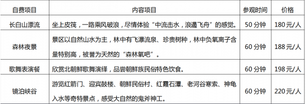5、由于季節性或景區是否開放因素,自費項目可能會作出相應調整,但數量不會增加。6、旅游者與旅行社雙方協商一致,可選擇以下自費項目,價格包含:門票、車費、導游和司機服務費、停車費等綜合費用。