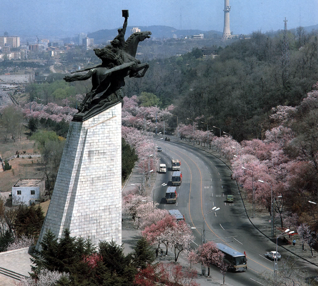 人民大學(xué)習(xí)堂坐落在平壤市中心,造型雄偉典雅,是由10座樓組成的10層建筑。大廳里明凈的墻壁,圓形的立柱,花紋大理石的裝飾,玉石鋪成的花紋地板,十分和諧地融合在一起,充分顯示了民族建筑形式的藝術(shù)美。有34個屋頂組成的朝鮮式青瓦屋頂,顯得雄偉清雅,又如展翅騰空的群雁。總建筑面積10萬平方米,1982年4月開館。