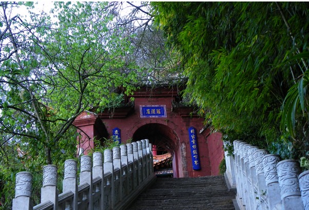 龍門,位于三清閣南面,包括北由三清閣“別有洞天”石洞門起,南至達天閣止的整個在千仞削壁上的石窟石道工程。在羅漢山與掛榜山之間,削壁上由北向南原有4個巖洞,明嘉靖年間,北面靠三清閣的一個巖洞已開發,建了“穴石小樓”,當年登這個洞需攀鐵索過棧道危磴。