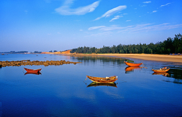 三娘灣位于欽州市犀牛腳鎮(zhèn)東面約5公里處海灣邊,距離欽州市區(qū)約38公里,南臨北部灣,背倚烏雷山,掩映在枝繁葉茂的紅樹林里的海灘潔白柔軟,站在如天外流星墜落海灘的三婆石上,朝可觀旭日東升,晚可賞夕陽斜照;版權(quán)所有山東聊城聊之旅國際旅行社有限公司,轉(zhuǎn)載必究!還可拜烏雷伏波廟、游威德寺、觀東漢大將風采;更妙的是登上漁船出海觀光,品海鮮、沐海風,觀賞珍奇的中華白海豚,盡享藍天碧海、人歡魚躍的情趣。