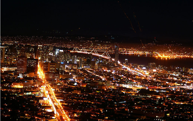 從空中俯瞰舊金山,這座城市就象晶體管收音機(jī)一樣整潔:一塊塊精妙絕倫的維多利亞式的建筑群、四四方方的公園、蔚藍(lán)的海濱美景,摩天大樓裝飾精美,反光玻璃輝映著絢麗的街景,蜿蜒曲折的高速公路連綿伸向高聳入云的商業(yè)區(qū)。