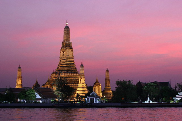 鄭王廟--又稱黎明寺,泰人稱“瓦倫阿”廟,是達信王鄭昭的皇家佛寺。在“黃袍之國”的泰國,全國城鄉有大小廟宇4萬多座,而位于湄南河畔的瓦倫阿廟則是全泰的四大名剎之一。這不僅因為它建筑雄偉,更因為它昭示了四世泰皇--華人鄭達信拯救國家的偉大功勛。鄭昭,又名鄭達信,原是廣東人,250年前,他從廣東澄海出發闖南洋,最后落腳泰國。在公元18世紀60年代的泰緬戰爭中,緬軍攻破泰都大城,大城王朝滅亡。鄭達信率領以華人子弟兵為主的義勇軍浴血奮戰,沿湄南河長驅直入,收復大城,被泰人推舉為四世泰皇。為了紀念鄭達信領導泰國各族人民奮驅外敵,重整江山的豐功偉績,泰國人在他死后建廟紀念。整個鄭王廟建筑恢宏壯觀,氣勢磅礴,依山而建、高達79公尺的鄭王塔凝重雄偉,正象偉男子頂天立地,予人以極其深刻的印象。主塔廟堂現供有鄭昭王像和其遺物,殿內懸有中國式的燈籠。四周有四座形狀相同的小塔環繞拱衛,構思獨特。參觀鄭王廟不僅可以欣賞湄南河的美景,