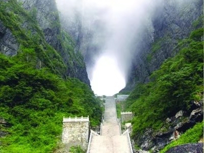 據說,天門洞開景區的有上天梯。有著九百九十九級臺階的上天梯!