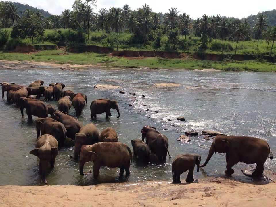 斯里蘭卡大象孤兒院里的大象在洗澡