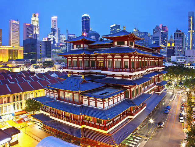 這組建筑群中最重要的是存放佛祖釋迦牟尼牙骨的佛殿。佛牙寺緊鄰王宮,建在一長方形花崗石基上。寺為二層,奶白色的墻體,紅瓦大檐頂,雖然說不上高大雄偉,卻也莊嚴肅穆。