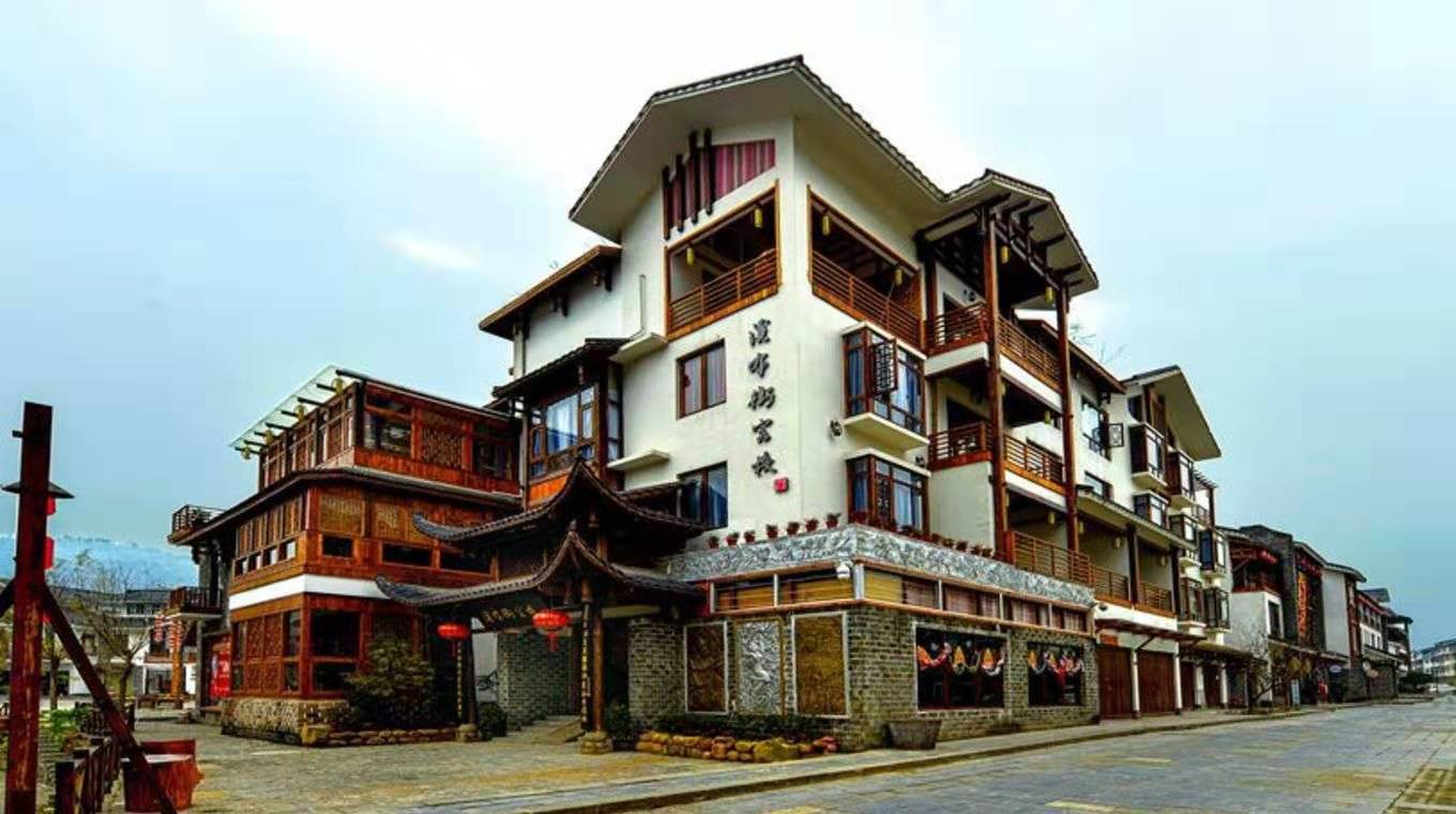 休閑客棧:客棧位于靠武陵大道,以土家族吊腳樓形式建造,每一棟客棧都帶有庭院,高4層,客棧總面積約為9000平米,面積區間800—1200平米,客棧房間設計方正,采光好,客棧內配套設施全,如布草間,廚房、餐廳等。