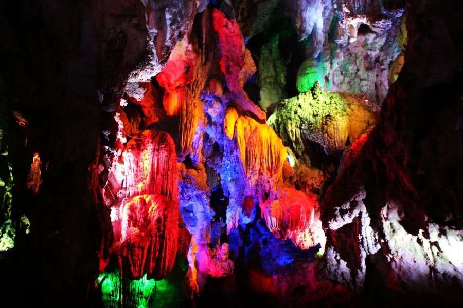一、二進龍宮被譽為全國最長、最美的水溶洞,為龍宮三絕之一,其蜿蜒于龍宮奇峰異谷之下,堪稱一絕。其中一進龍宮長840米,由群龍迎賓廳、浮雕壁畫廳、五龍護寶廳、水晶宮、高峽幽谷宮五個部分組成,乘船穿行于溶洞暗河之中,頭頂斑斕的洞中奇景若絢麗的夜空,與平靜水面的倒影交相輝映。二進龍宮全長400米,共分為四個大廳。洞內景觀粗曠,鐘乳怪誕,如刀劈似斧削,潭深水幽,曲折神密,水幕電影光怪陸離,船行其中恍如“時光隧道”,妙趣橫生。