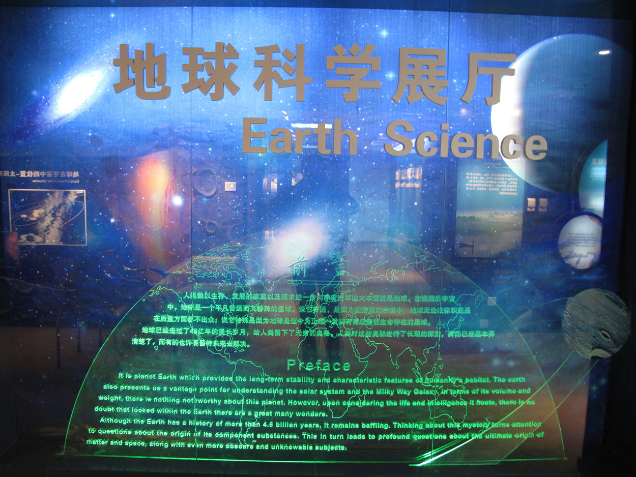 地學(xué)陳列展覽包括地球奧秘展廳、生命起源與進化展廳、珠寶玉石展廳、礦物巖石展廳以及礦產(chǎn)資源展廳。生動而豐富的展示內(nèi)容配合新穎而獨特的展示形式為觀眾打開了地球46億年滄桑巨變的宏偉畫卷、地球生命38億年進化的歷史長廊,展示了精美絕倫的珠寶玉石世界、五光十色的礦物巖石天地以及與人類生存息息相關(guān)的地下寶藏,講述了人類與大自然和諧協(xié)調(diào)發(fā)展的重要性,告訴人們保護環(huán)境是每個人的神圣職責。其展示內(nèi)容融科學(xué)性、知識性、通俗性和趣味性于一體,展示形式包括聲光電技術(shù)、模擬仿真技術(shù)、信息化展示技術(shù)、互動技術(shù)以及相關(guān)高新科技手段等。此外館內(nèi)還設(shè)置了寶玉石禮品廳、寶玉石工藝品柜臺以及休閑服務(wù)區(qū),可滿足游客休閑和購物的需要。