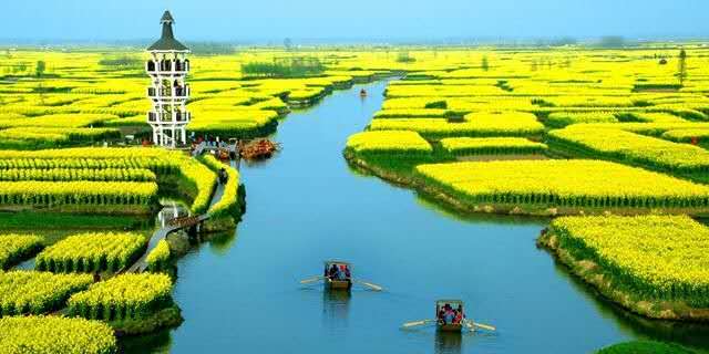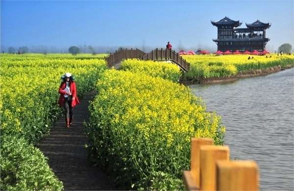 興化油菜花景區,位于興化市缸顧鄉東旺村和李中鎮黑高村東側,以千島樣式形成的垛田景觀享譽全國,有“千島油菜花”之稱。千百垛田漂浮于水中,云蒸霞蔚,煞是壯觀。版權所有山東聊城聊之旅國際旅行社有限公司,轉載必究!垛田是興化市一種獨特的農田地貌,每當枯水季節,百姓們就將低洼地區水中的泥土挖上來,堆積到較高的地方,形成了一塊塊水中小島式的垛田。置身其中,如同走進古人擺設的水中“龍門陣”。