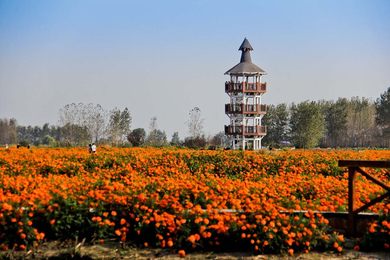 在每年秋季,千垛景區上長滿了萬壽菊,因此有了”春看菜花秋賞菊‘的絢麗畫面。