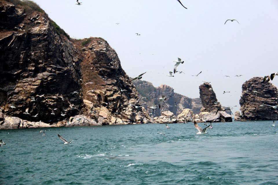 一條蛇每年至少要吃掉8—10只小鳥才能滿足生存所需的能量,這就意味著,每年將會有16—20萬小鳥供蛇食用。如果按蝮蛇捕食率10%來計(jì)算,每年將有200萬只小鳥飛落蛇島。因此,保護(hù)老鐵山的候鳥不僅在于保障遷徙,也是為了蛇島蝮蛇提供充足的食源?!▲B島又名海貓島,因?yàn)樗鼈兊慕新曄褙?,因?dāng)?shù)貪O民把海鷗稱為“海貓”而得名。鳥島位于旅順口董砣子7.2公里處的渤海之中,總面積0.3平方公里。與蛇島相距7海里,島上的植物、巖石和土壤與蛇島接近,但它卻是海鷗生息的樂園,同時(shí)有白眉蝮蛇與之和平相處。個別饑不擇食的白眉蝮蛇冒犯海鷗,必然遭到海鷗的群起而攻之,最后被海鷗啄起丟人大海。最令人驚奇得是:如果將蛇島和鳥島的兩類蛇交換“場地”,都不能生存下去,至今這還是一個待解之謎。來到鳥島大有“遙看碧波小龍鳳,崖前飛鷗似云行”之感?,F(xiàn)在我們大家如果感興趣的話可以自費(fèi)乘坐我們的游艇需要90分鐘的環(huán)島觀看,蛇島是國家級自然保護(hù)區(qū),一般人是很難得近距離觀看。蛇島周圍風(fēng)景優(yōu)美,有鹿石等名聲景點(diǎn),在乘船過程中可以看見難得一見的野生海豚,因?yàn)檫@里是海豚繁殖區(qū)。