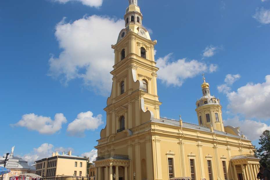 彼得堡羅大教堂、鐘樓、圣彼得門(mén)、彼得大帝的船屋、造幣廠、兵工廠、克龍維爾克炮樓、十二月革命黨人紀(jì)念碑等建筑物。其中,最著名的是彼得堡羅大教堂。這座大教堂建于1703年,原先是木質(zhì)的,1712-1733年在原處改建為石砌的大教堂。是一座早期俄羅斯巴羅克式大教堂。教堂外表莊嚴(yán)肅穆,內(nèi)部裝飾富麗堂皇,有鍍銅的吊燈和有色的水晶枝形燈架。教堂內(nèi)壁裝飾有43幅精雕細(xì)鏤的木刻雕像。教堂內(nèi)有從彼得大帝到亞歷山大三世的俄國(guó)歷代沙皇的陵墓,許多大公也附葬于此,均立有大理石墓碑。1998年7月17日,末代沙皇尼古拉二世及其全家的遺骸也安葬于這里。大教堂的鐘樓高122米,到本世紀(jì)中葉,是全城最高的建筑物。版權(quán)所有山東聊城聊之旅國(guó)際旅行社有限公司,轉(zhuǎn)載必究!鐘樓尖頂上的天使塑像高3.2米,塑像雙翼伸展3.8米,塑像頭上十字架高6.4米。塔金光閃閃的尖頂直刺藍(lán)天,景色十分迷人。在教堂旁有一座小亭子,裝飾有圓柱和航海女神的塑像,是保存彼得大帝的一只小船的船屋。