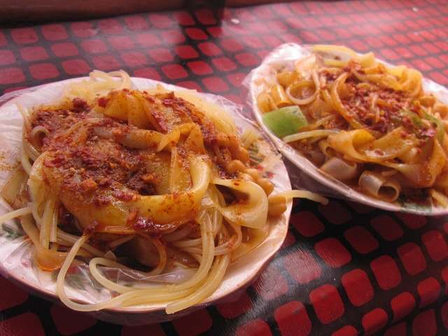 烤包子,涼皮,涼粉,抓飯,拉條子,烤羊肉 ,面肺子(不要輕易嘗試),卡瓦斯。重點介紹一下冰激凌,手工制作的冰激凌,因為用料純,無香精等添加劑,所以會有一點點牛奶的膻味。每一種食物的制作過程都是那么奇妙,如冰涼可口的卡瓦斯,需要在高溫下發(fā)酵。而盛夏那香甜的冰激凌,帶給人們的是涼爽,但在制作過程卻要經(jīng)過爐火的不斷煎熬才能保證其純正的味道。爐火燒得正旺時,埃賽提在兩口大鍋中各倒入50公斤牛奶,再加入白砂糖。為了不讓牛奶糊鍋,需不停地用木鏟攪拌,直至牛奶呈現(xiàn)出誘人的奶黃色。而這僅是制作冰激凌的第一步——煮熟,卻需要兩個多小時。然后加入新鮮的雞蛋,繼續(xù)攪拌兩個小時,使牛奶與雞蛋完全融合,直至埃賽提所說的“冰激凌”的顏色出來,這就是為什么我們吃的手工冰激凌總是呈現(xiàn)出誘人的蛋黃色的原因。