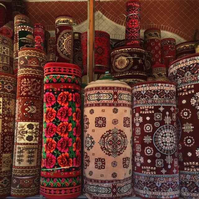 街道兩旁是匯集了上百家的手工作坊。漫步其中,鐵藝、木藝、皮具一類也并不讓人感到奇特,然而沙畫、刺繡、傳統(tǒng)樂器等手工藝品可就不由得您多看兩眼。說的再好,也有說不出的好;說的再全,也會有遺漏的珍品。畢竟這兒的手工作坊,生產(chǎn)的東西是五花八門,甚至于在那不起眼的小角落里坐著的老人,都可能是某個手工制作領(lǐng)域的專家,一時興起,隨手就做得出一件令人喜愛的活計。歷史的煙云為喀贊其蒙上了一層古樸與神秘的色彩。工匠、作坊,手工制品,因為一輩輩的懷著執(zhí)著的傳承者存在,才會沒有隨著歲月而去。在這個好似鄉(xiāng)間的古老城區(qū),似乎一切都停留在從前的某個時候。圖為喀贊其的藝人正在手工制作樂器。