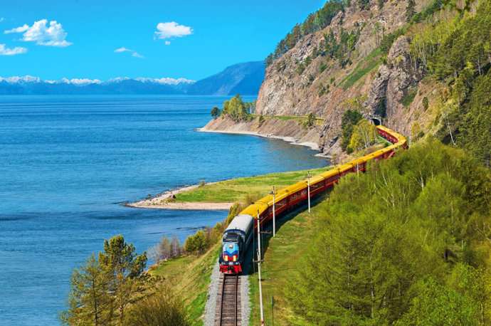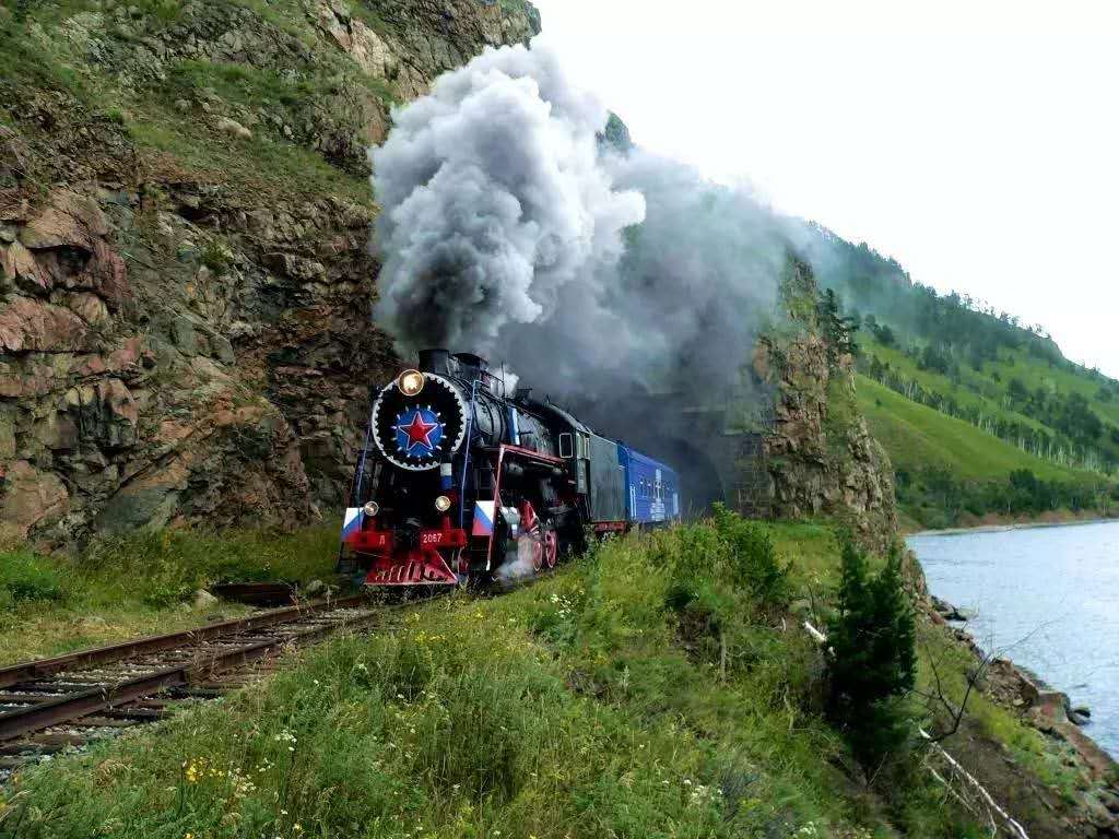 環(huán)貝加爾湖的鐵路本來是西伯利亞大鐵路的一部分。西伯利亞大鐵路西起莫斯科,跨越八個時區(qū)和16條歐亞河流,沿途經(jīng)1000多個車站,一直通往日本海沿岸的符拉迪沃斯托克(海參崴),總長9200多公里。
