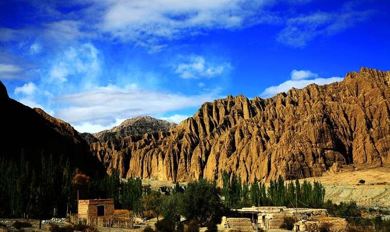 從地理位置上來說,蓋孜大峽谷是通往帕米爾高原的門戶,距離喀什市往西大約有127公里,海拔2500米,是前往帕米爾高原的第一站。帕米爾高原古稱不周山、蔥嶺,古絲綢之路就從此經(jīng)過,古人曾在峭壁上修棧道,如今在高懸的絕壁上,仍然還依稀可以看見有打孔木樁的遺跡。版權(quán)所有山東聊城聊之旅國際旅行社有限公司,轉(zhuǎn)載必究!由于大峽谷內(nèi)植被稀少,因此當(dāng)?shù)厮四撩褚埠苌僭诖顺鰶],漫山遍野有一種荒蕪的景象。
