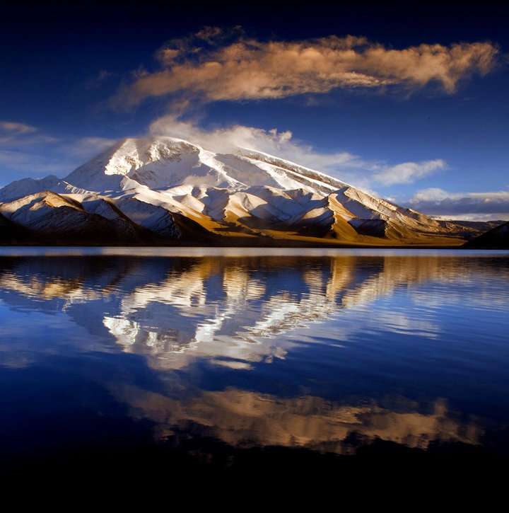 九別峰與公格爾峰并肩而立,猶如一對親密的姐妹。九別峰海拔7530米。公格爾九別峰,海拔7530米,位于東經75.1度,北緯38.6度;兩峰同在西昆侖山脈西端的山脊線上,直線距離僅15公里。 它們的山體相連,是一對聯抉而立的姊妹峰,坐落在新疆阿克陶縣境內。它們與其南面的慕士塔格山同居西昆侖山脈,并稱為東帕米爾高原的三座著名高峰。